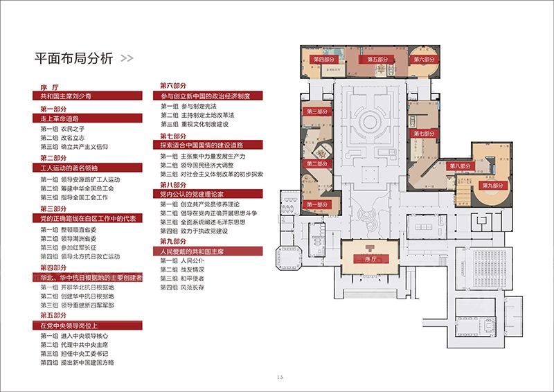 纪念馆总陈展面积2700平方,划分为“序厅——走上革命道路——工人运动的著名领袖——党在白区工作的正确路线代表——华北、华中抗日根据地的主要创建者和领导者——在党中央领导岗位上——参与创立新中国的政治经济制度——探索符合中国国情的建设道路——党内公认的党建理论家——人民爱戴的共和国主席”十大部分,全面细致地生动演绎少奇同志为党和人民事业奋斗的一生。