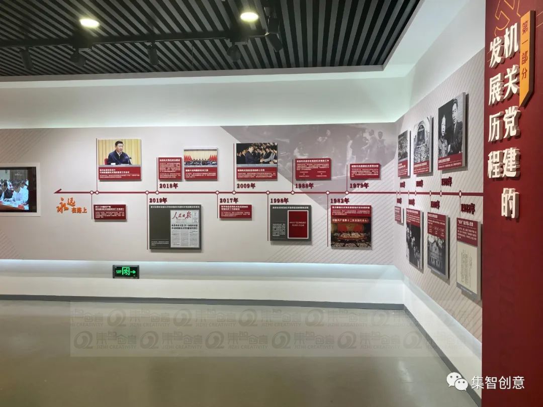 通过发展历程、系统工程、生动实践和前进方向四个部分依次展开,利用现代化的展览技术,简洁明快的形式设计,智慧化的多媒体手段,打造具有时代性、示范性与感染力的机关党组织活动平台和党员党性教育基地,推动机关党的建设始终走在前、作表率。